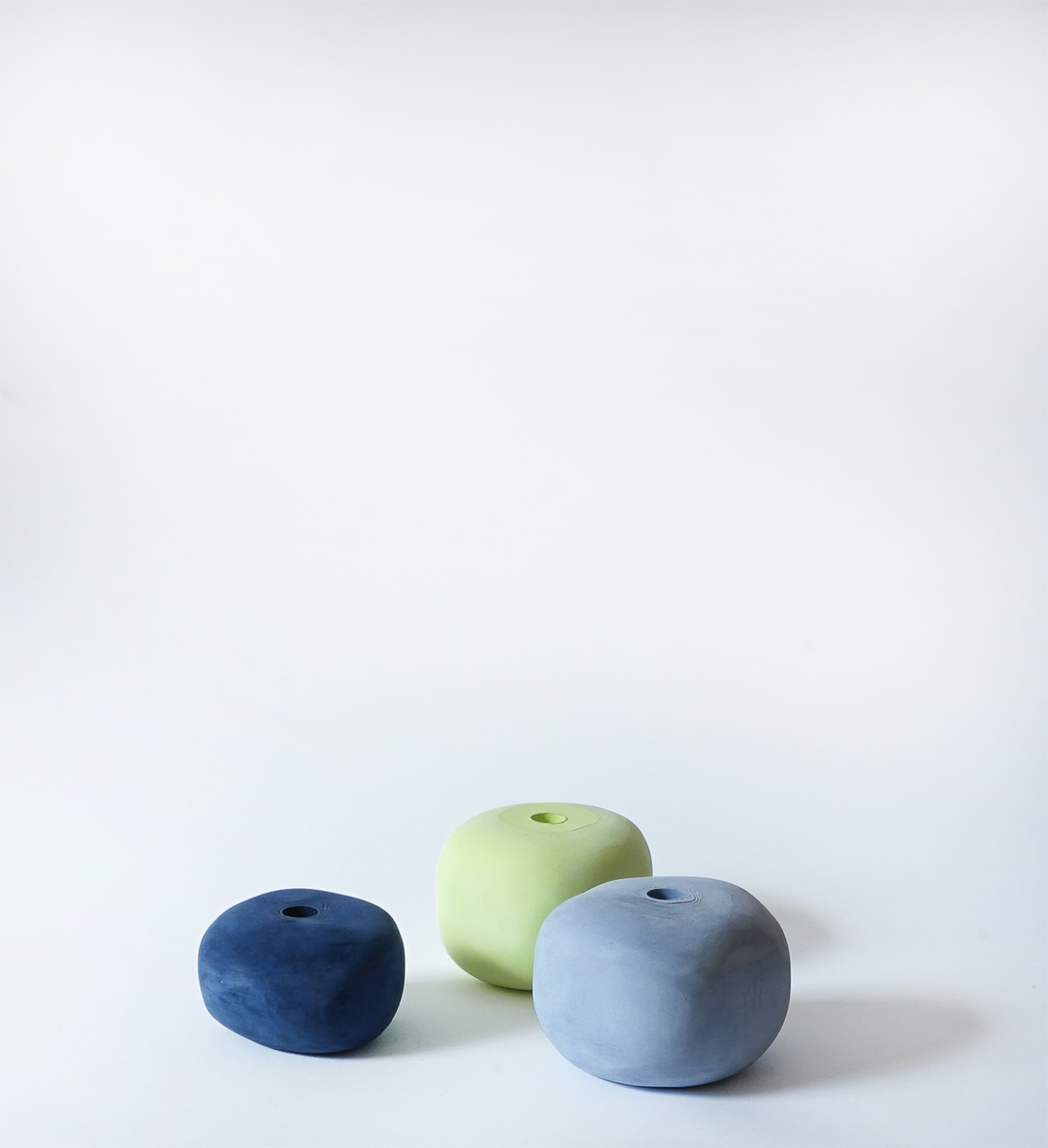 Das Innen bedingt das Außen und gleichzeitig wird die äußere Form von außen geformt. Die Herstellungsweise der Objekte lässt die einzelnen fragilen Blätter zu einer einheitlichen Gesamtform werden. Von Innen heraus gehalten, lassen sich die einzelnen Seiten noch „durchblättern“ und das Papier in seiner ursprünglichen Form erahnen. Durch die Schattenbildung der dreidimensionalen Objekte wirken die einzelnen Farben in ihrer ganzen Tiefe und bieten uns unzählige Schattierungen innerhalb einer Farbwelt. Die samtige Oberfläche, die durch das Bearbeiten entsteht, wird durch die haptische Qualität des Papiers noch hervorgehoben und das Innere kehrt sich nach außen. Fotos: Kathrin Schumacher